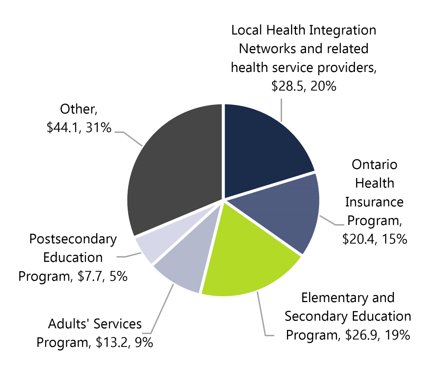 On November 29, 2018, the Government of Ontario (the Province) tabled in the Legislative Assembly the 2018-19 Expenditure Estimates. The Expenditure Estimates (or Estimates) set out the fiscal year’s spending requirements for ministries and legislative offices[9] and constitute the government’s formal request to the legislature for approval to spend the amounts as detailed in the Estimates. After reviewing the Estimates, Members of Provincial Parliament (MPPs) approve the government’s spending request through passage of the annual Supply Bill.[10]