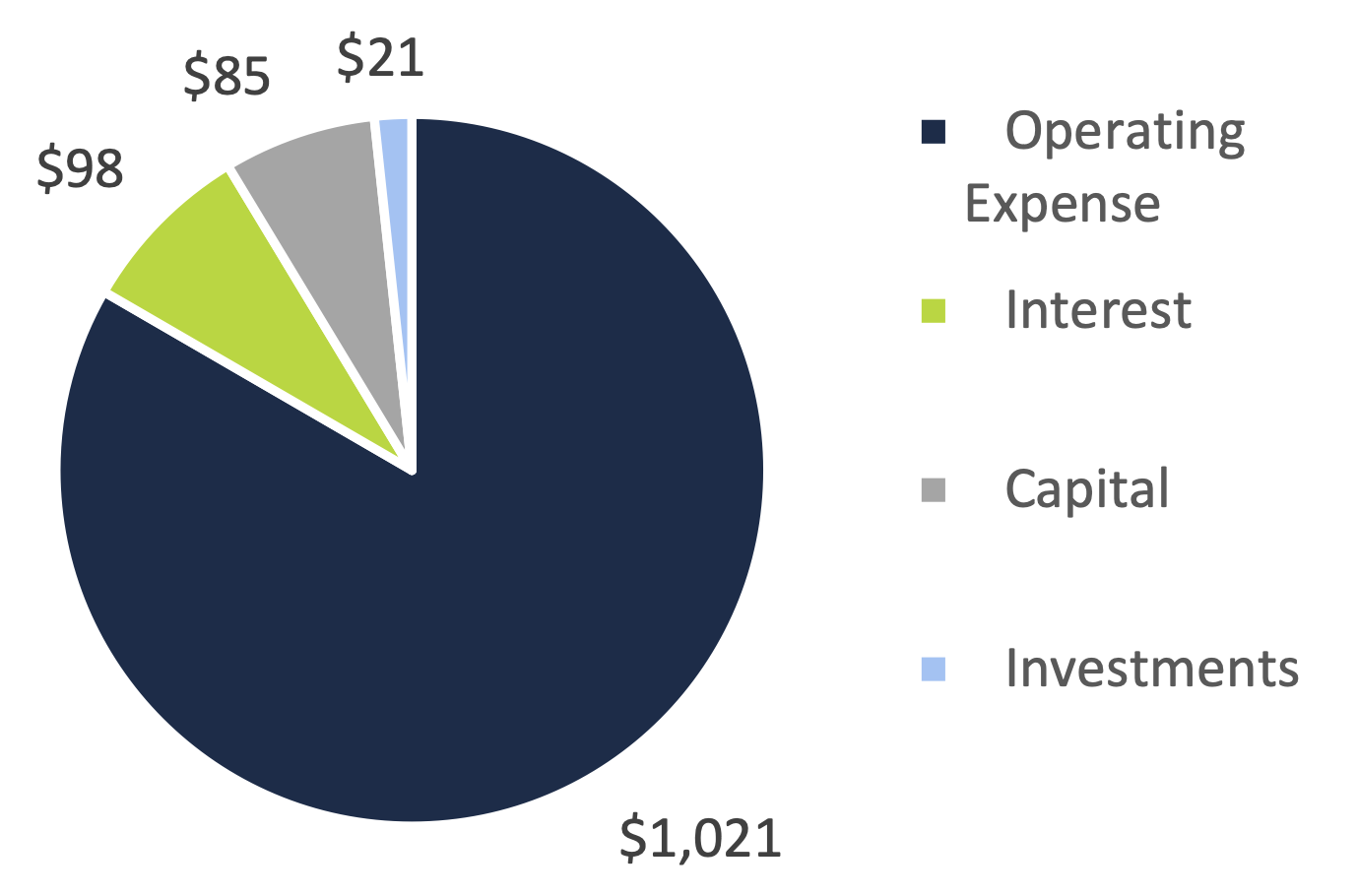 This figure shows the different uses of Provincial cash over the past 10 fiscal years; from 2006-07 to 2015-16. This figure shows that the most significant use of Provincial cash was for operating expenses ($1 trillion). This figure shows that the Province spent $98 billion in cash on paying for interest expenses and $85 billion on capital assets. This figure shows that the Province spent $21 billion in cash on purchasing investments.Figure 3 shows the FAO’s estimate of the uses of Provincial cash over the past 10 fiscal years. Overall, operating expenses[9] are the most significant use of cash ($1 trillion). All else equal, these expenses increase the annual deficit (reduce surplus) and include items such as supplies and equipment, transfer payments to municipalities and other organizations, and salaries and wages. For example, the Toronto Central Local Health Integration Network (LHIN) spent $3.6 billion on hospital operations in fiscal 2015-16.[10] The Province also used $98 billion in cash to pay interest on debt over the past 10 fiscal years. These interest payments also increase the deficit (reduce surplus), all else equal.