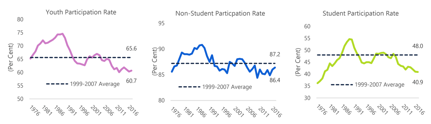 - The labour force participation rate of Ontario youth remains well-below its historical average.