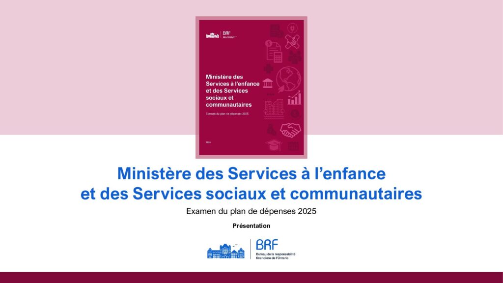-     23 octobre 2025Ce rapport passe en revue le plan de dépenses du ministère des Services à l’enfance et des Services sociaux et communautaires présenté dans le budget de l’Ontario 2025.