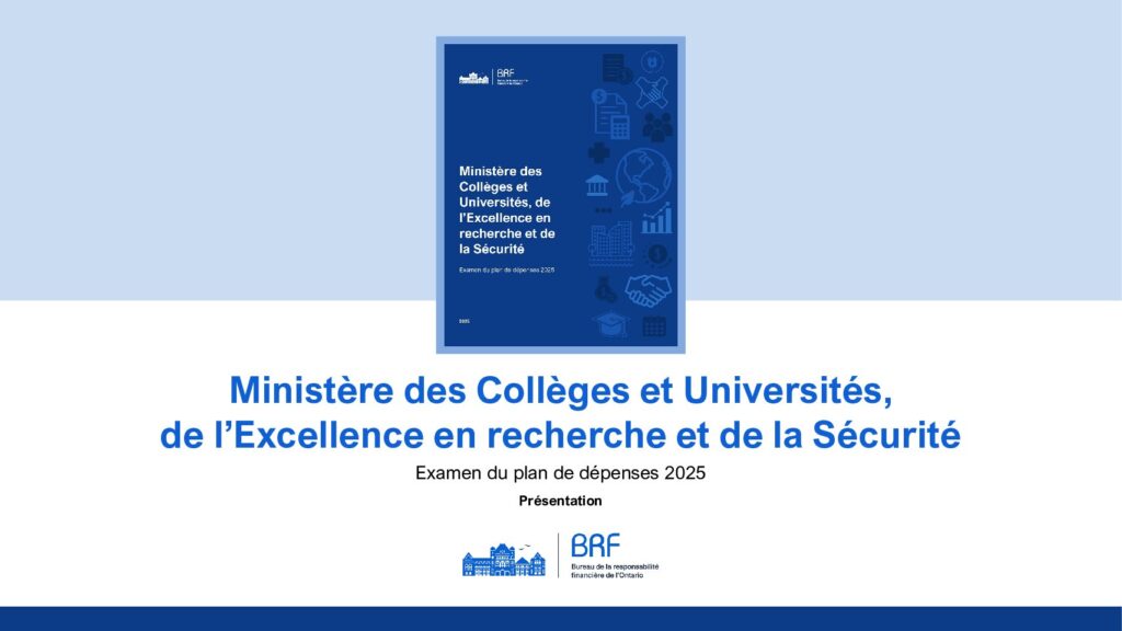 -     23 octobre 2025Ce rapport passe en revue le plan de dépenses du ministère des Collèges et Universités, de l’Excellence en recherche et de la Sécurité présenté dans le budget de l’Ontario 2025.