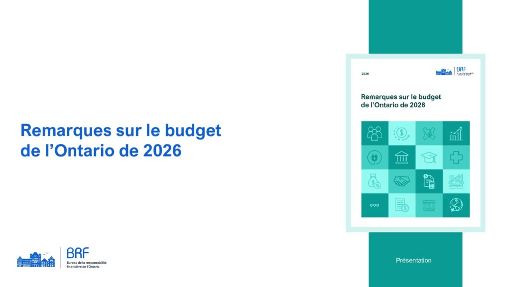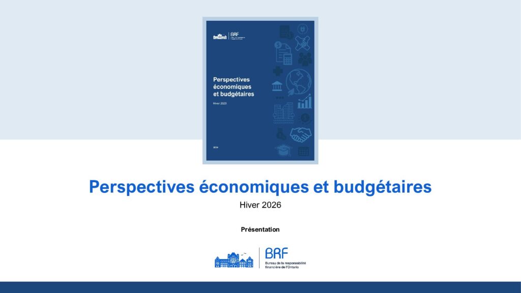 - 11 février 2026Le présent rapport présente les perspectives du BRF relatives à l’économie et aux finances de l’Ontario pour la période allant de 2025-2026 à 2030-2029.