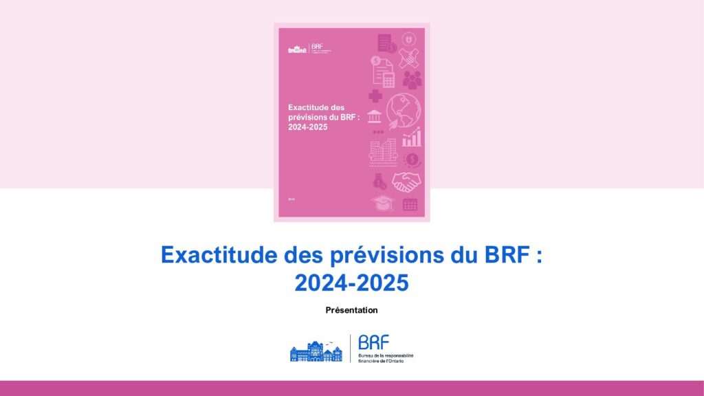 - 19 février 2026Ce rapport compare les projections du BRF pour l’exercice 2024‑2025 relativement au solde budgétaire, aux revenus et aux dépenses du gouvernement de l’Ontario avec les résultats réels publiés dans les Comptes publics de l’Ontario. Le rapport passe également en revue l’exactitude des prévisions historiques du BRF depuis 2016-2017 et compare les prévisions du BRF avec celles que le gouvernement publie dans les budgets de l’Ontario.