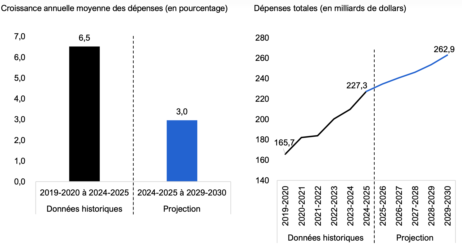 | Dépenses totales | 209,7 | 227,3 | 234,6 | 240,6 | 246,0 | 253,5 | 262,9 |