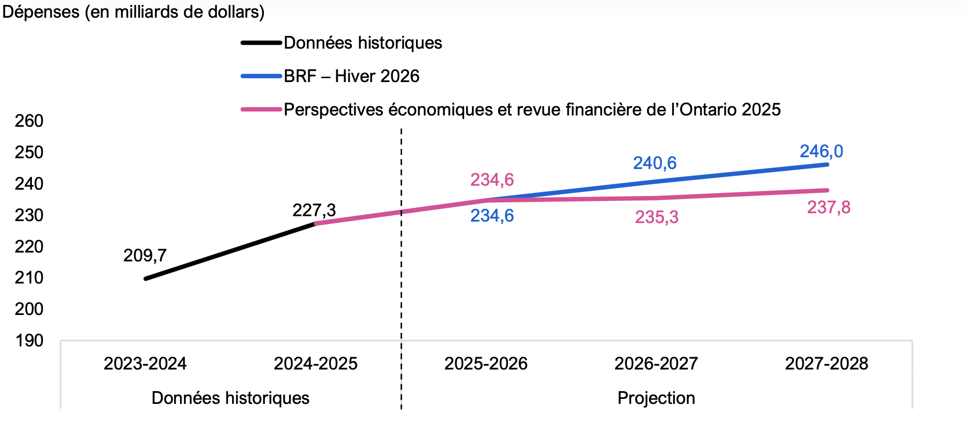 Sources : Perspectives économiques et revue financière de l’Ontario 2025, et BRF.