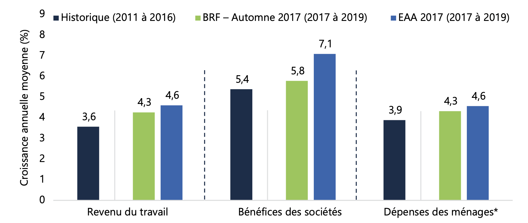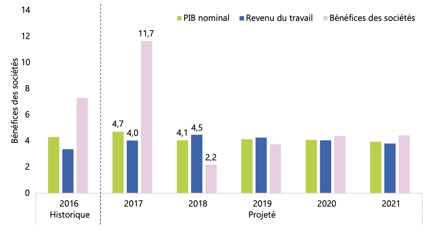 Le BRF s’attend à ce que la croissance du PIB nominal s’établisse à 4,7 % pour 2017, favorisée par une augmentation de 11,7 % des bénéfices des sociétés et une croissance plus modérée de 4,0 % pour le revenu du travail.
