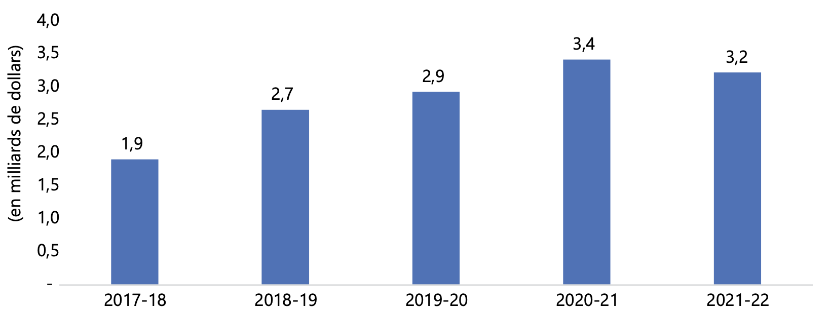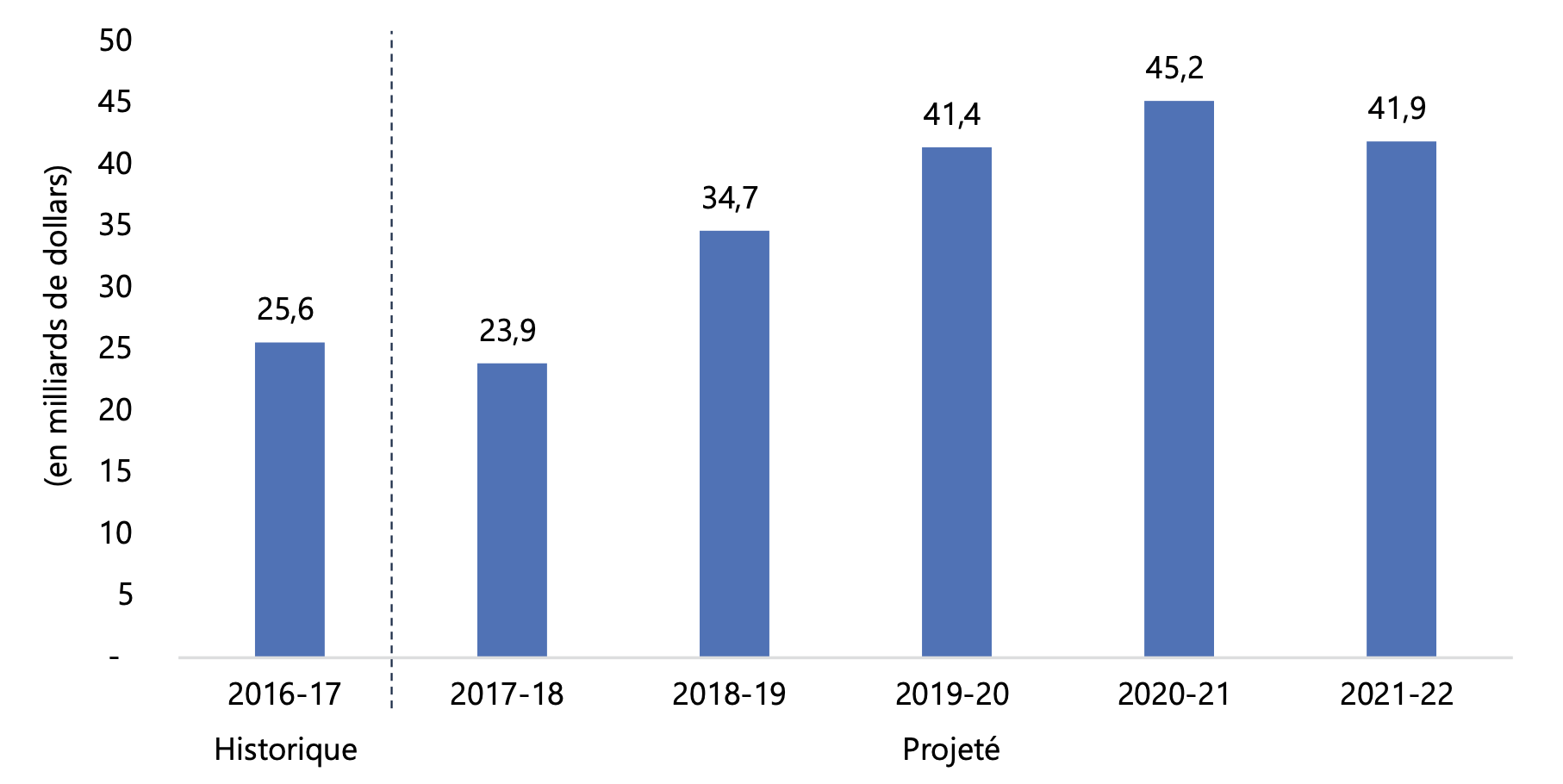 | (en milliards de dollars) | 2015-2016r | 2016-2017r | 2017-2018p | 2018-2019p | 2019-2020p | 2020-2021p | 2021-2022p |