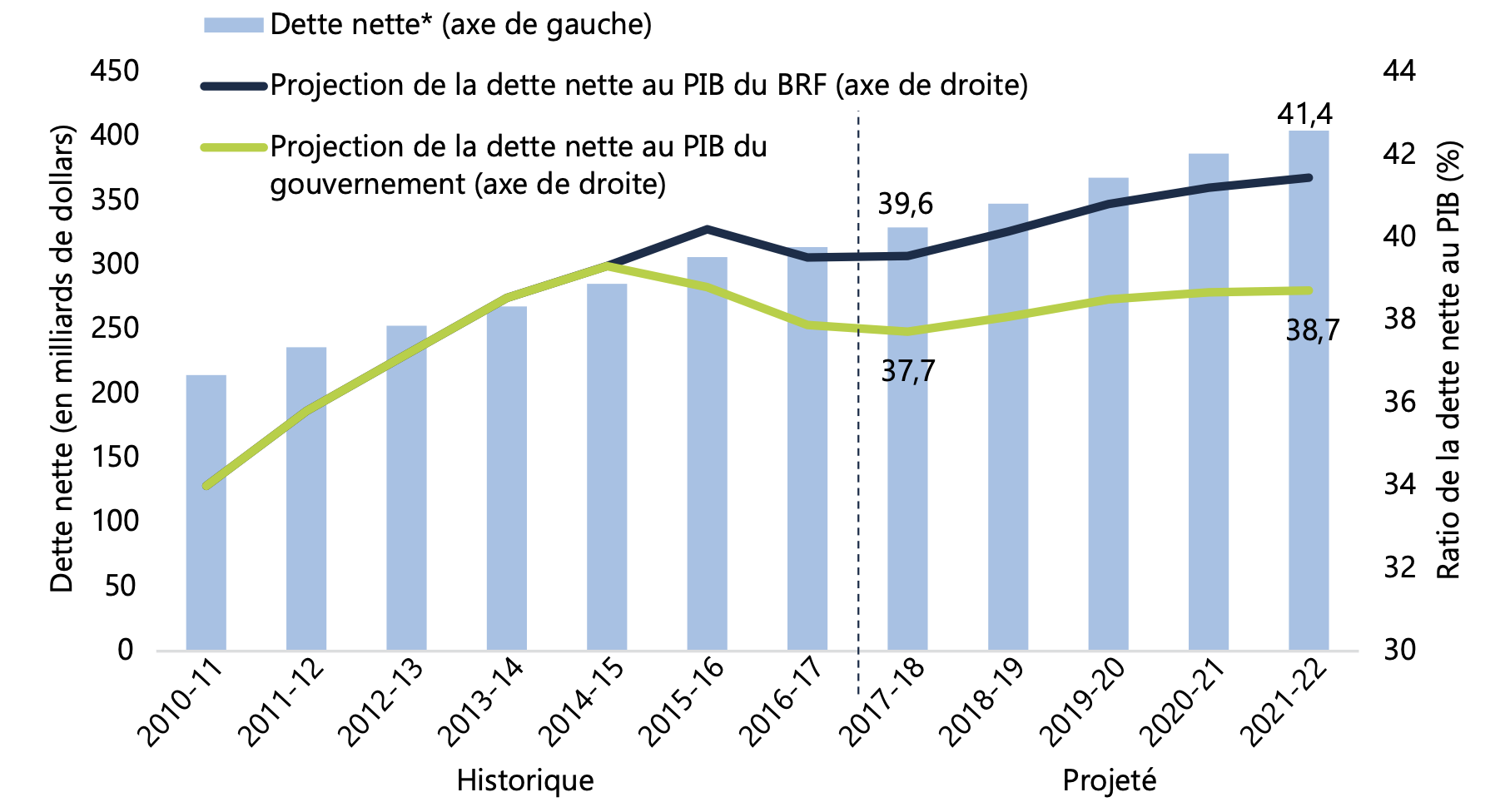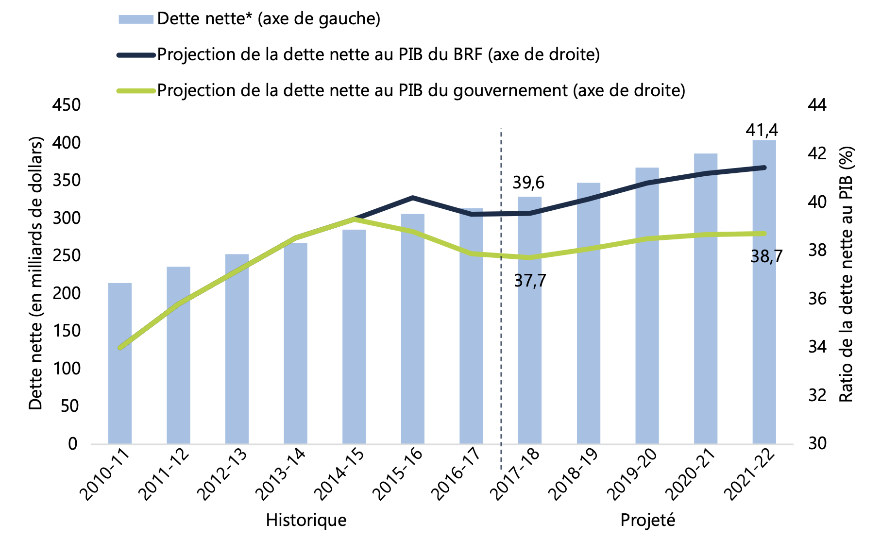 [3] La projection de la dette nette du BRF intègre la méthode comptable recommandée par la vérificatrice générale.