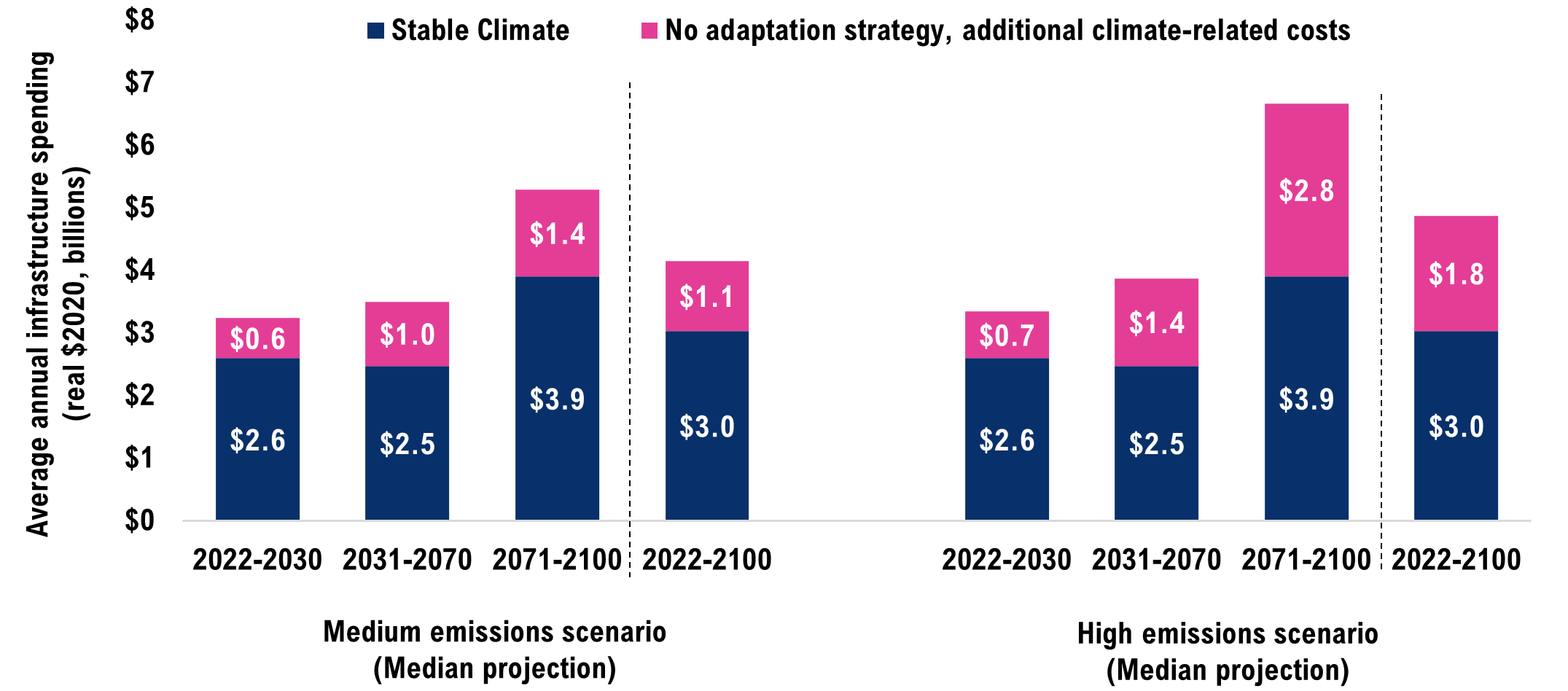 Costing climate impacts to public infrastructure over the long term is subject to significant uncertainty