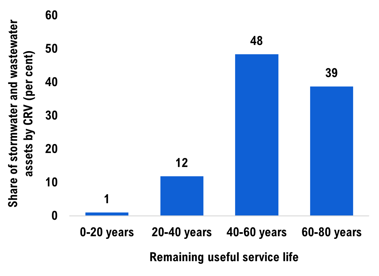 [21] The FAO estimates that 87 per cent of the public storm and wastewater assets in scope have a remaining useful service life of 40-80 years. See Figure 5-1 for details.