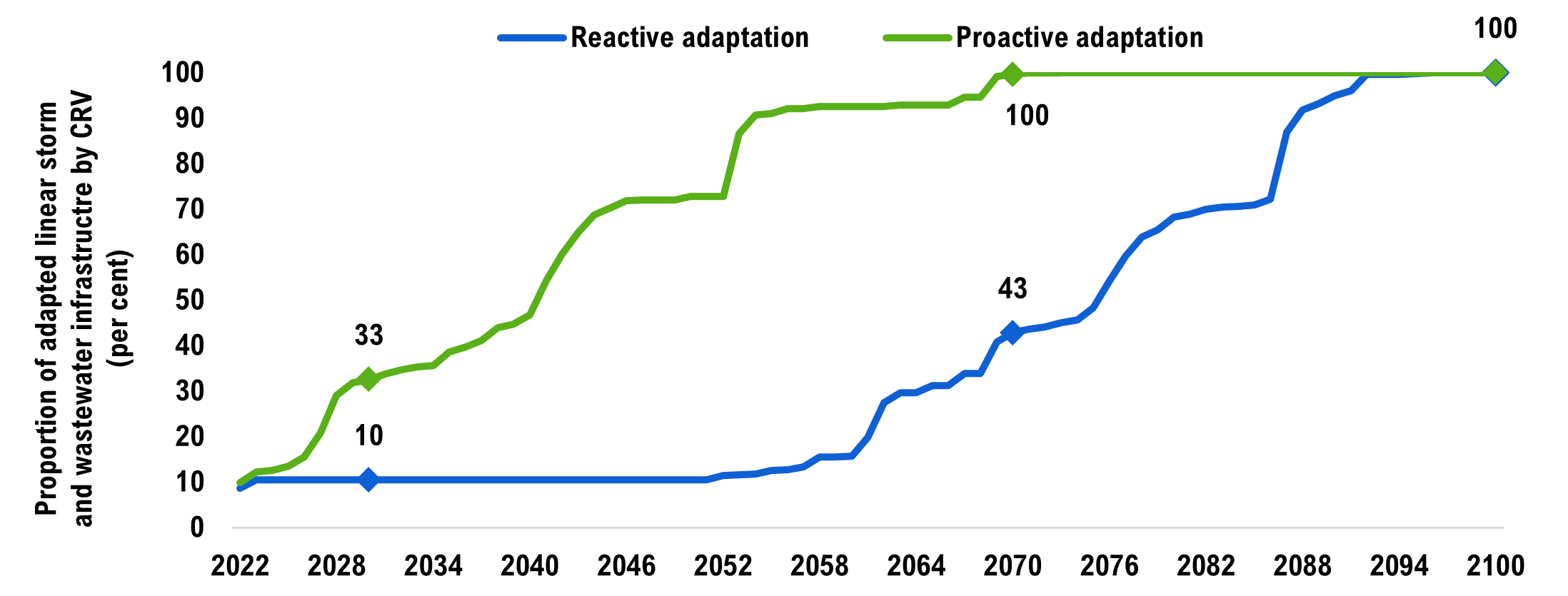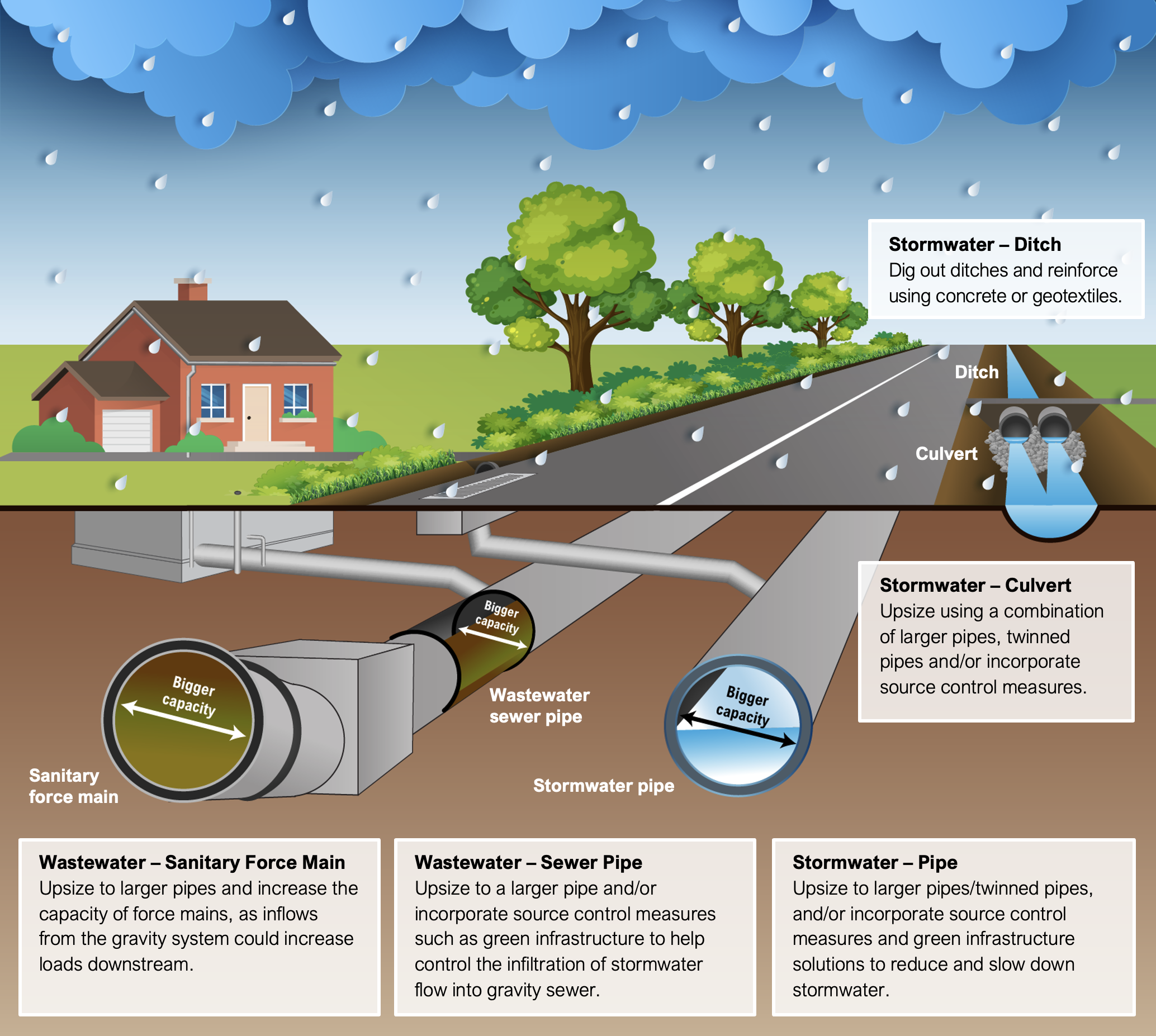Adaptation also ensures that linearstorm and wastewater assets will have adequate capacity to manage more extreme rainfall, reducing flood risk