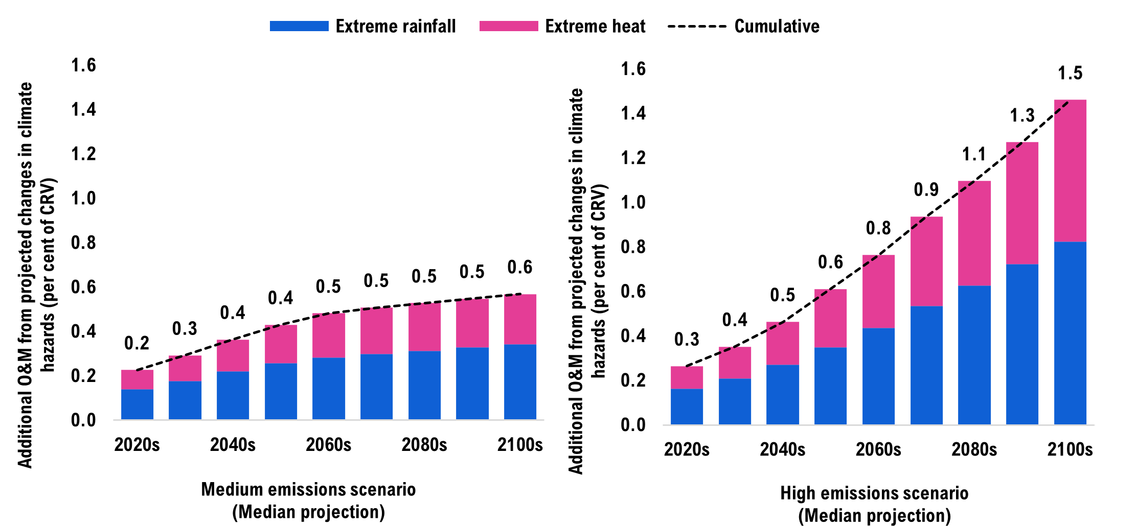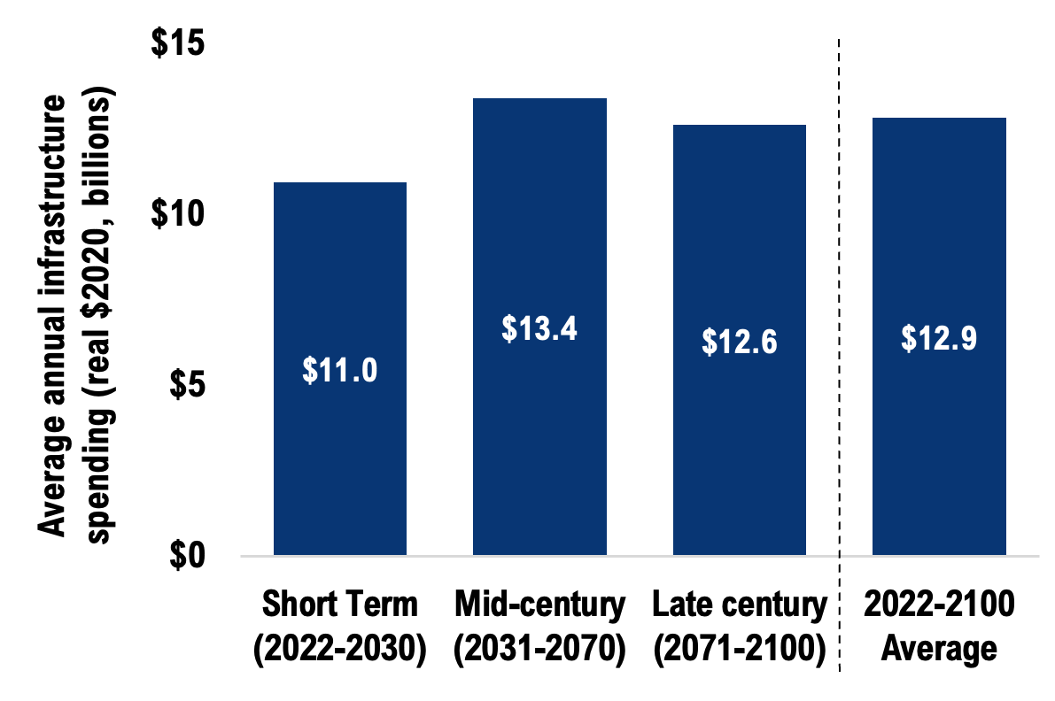 - The short term (2022-2030) shows how changing climate hazards are already impacting public infrastructure costs in the current decade.
