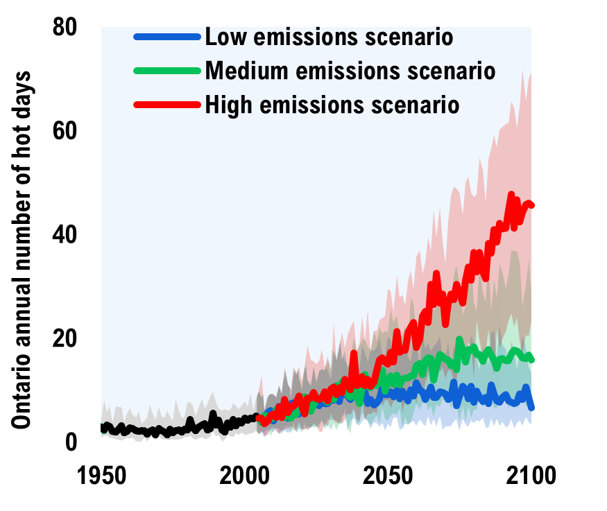[55] Most of Ontario’s public infrastructure is located in the southern regions. The weighted-average results presented in Appendix C largely reflect the climate projections for those regions.