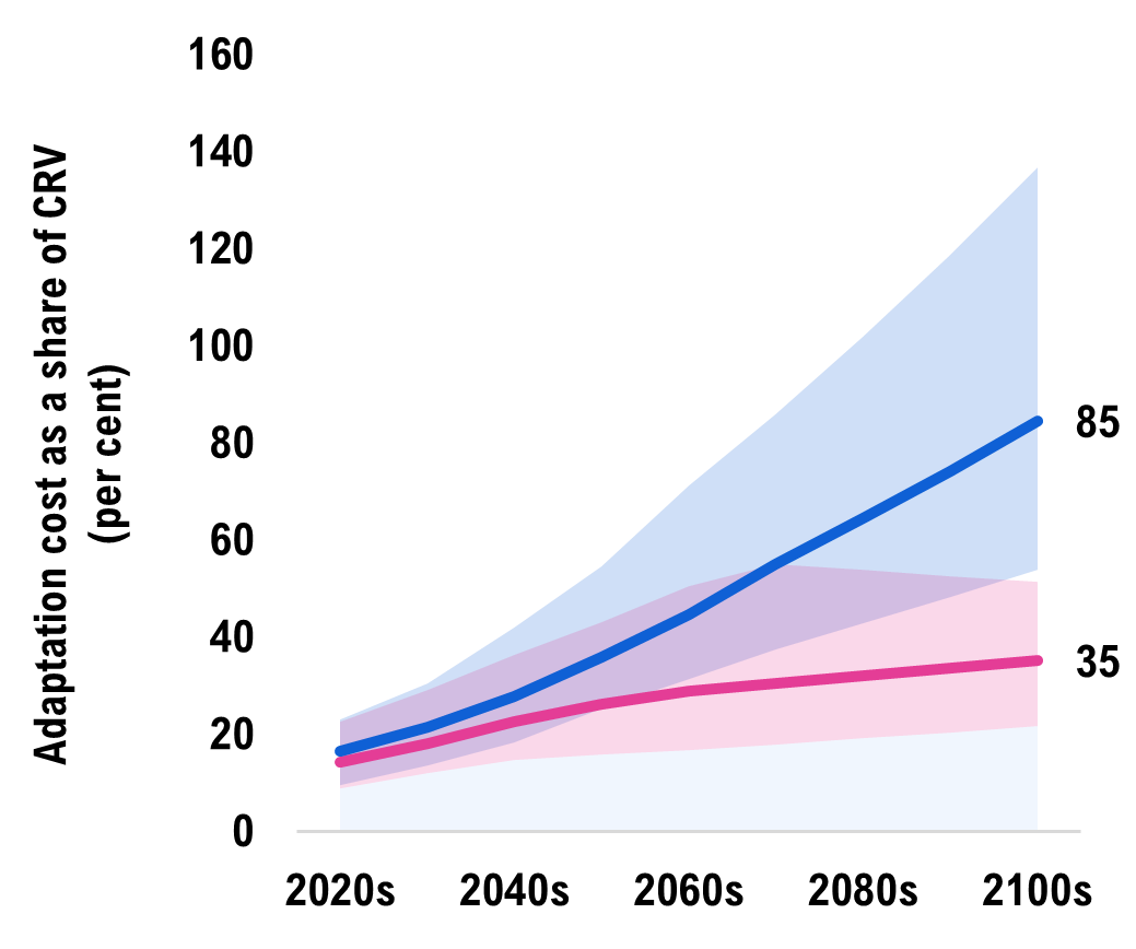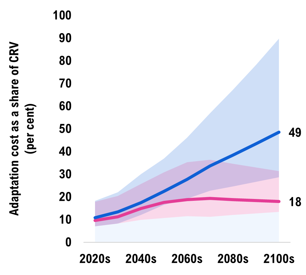 [52] These costs could range from $25 billion to $41 billion in the medium emissions scenario and from $31 billion to $56 billion in the high emissions scenario given the climate and engineering uncertainties.