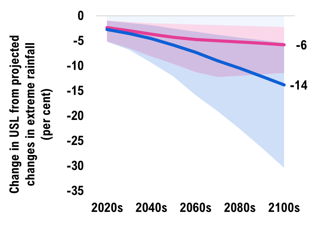 In the absence of adaptation, more extreme rainfall will increase the costs of maintaining this portfolio throughout the century, but the extent of the increase will depend on global climate change