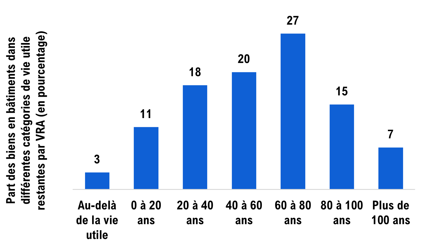 [21] Cette analyse présume que tous les biens sont remis en état et réhabilités dès que le besoin s’en fait sentir. En pratique, des arriérés d’infrastructure existent, et le maintien des biens en bon état de fonctionnement ne constitue qu’un aspect de la gestion des biens et peut entrer en conflit avec d’autres priorités budgétaires du gouvernement.