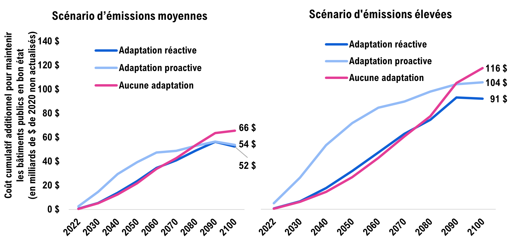 Les mesures d’adaptation feront légèrement baisser les coûts financiers directs d’entretien des bâtiments publics à long terme pour les gouvernements provincial et municipaux