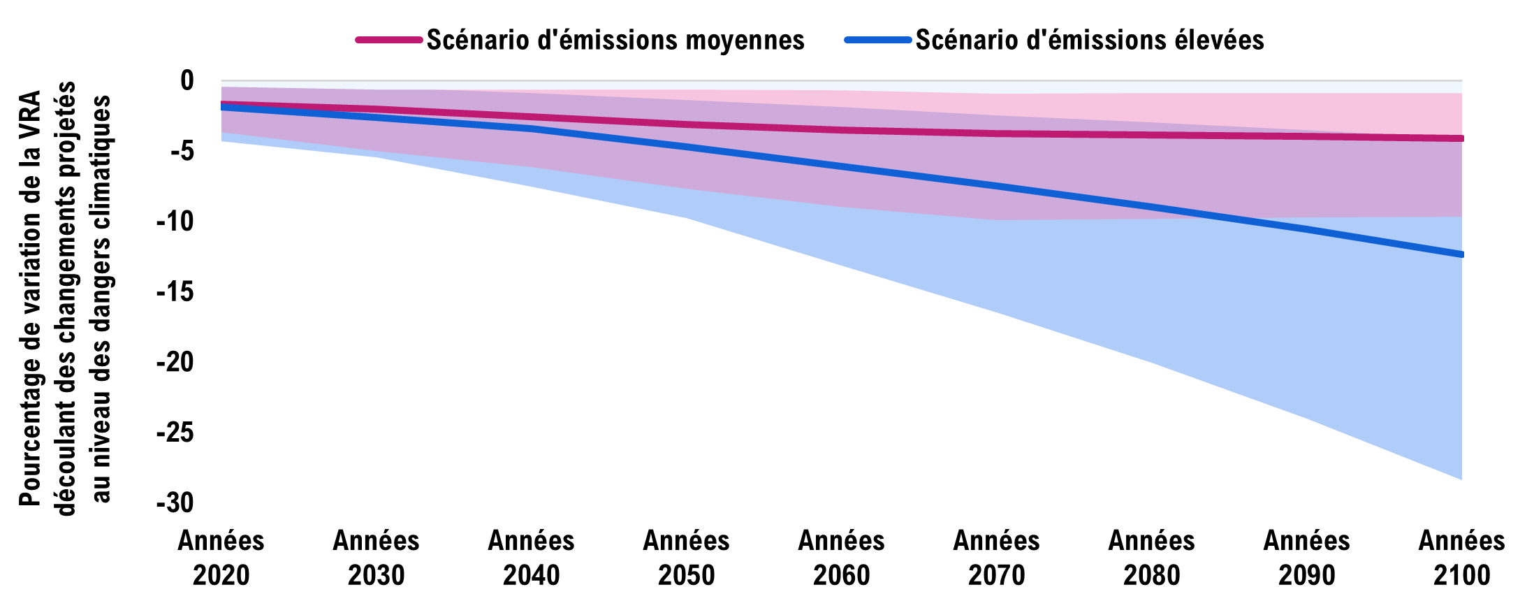 [43] Cependant, lorsqu’un bâtiment a été adapté, sa VRA augmente pour refléter l’ajout de composants résistants aux dangers climatiques, ce qui augmente les dépenses associées au maintien des biens adaptés en bon état de fonctionnement.