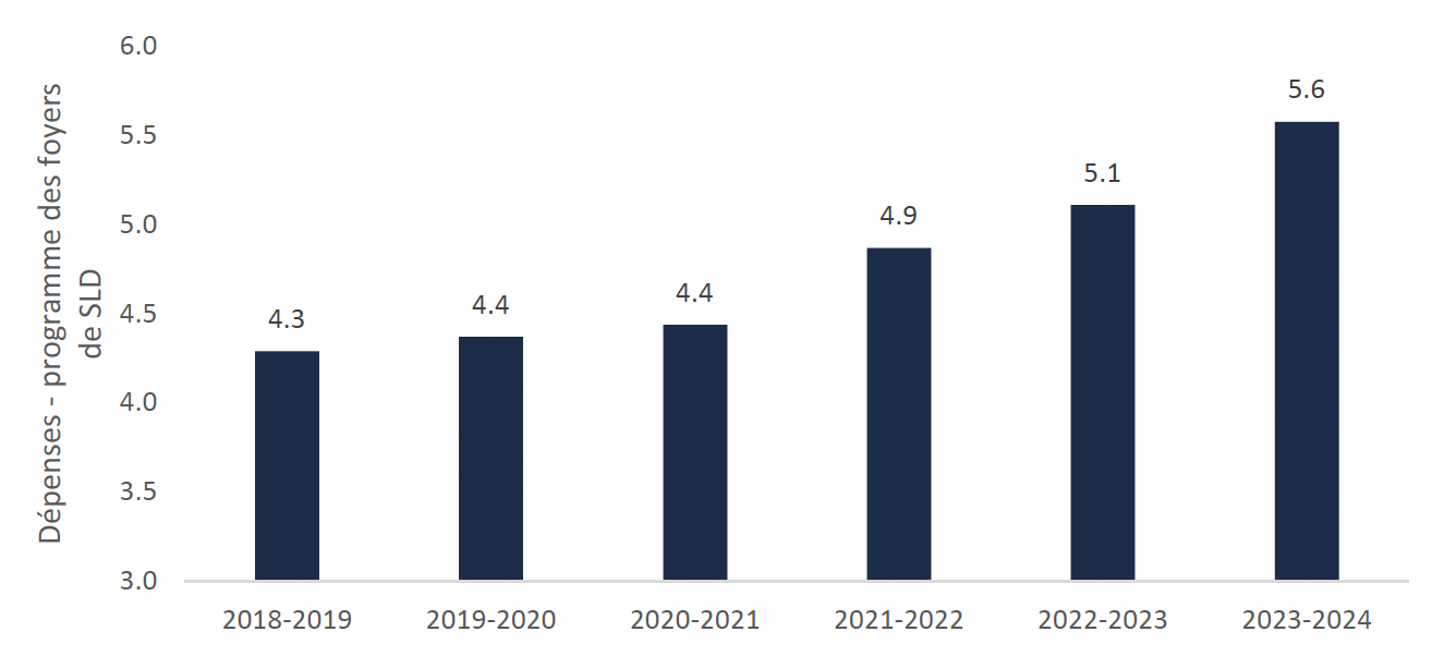 Coût total du programme des foyers de soins de longue durée | 5,8 | 5,9 | 6,0 | 6,6 | 6,9 | 7,5 | 5,3 % |