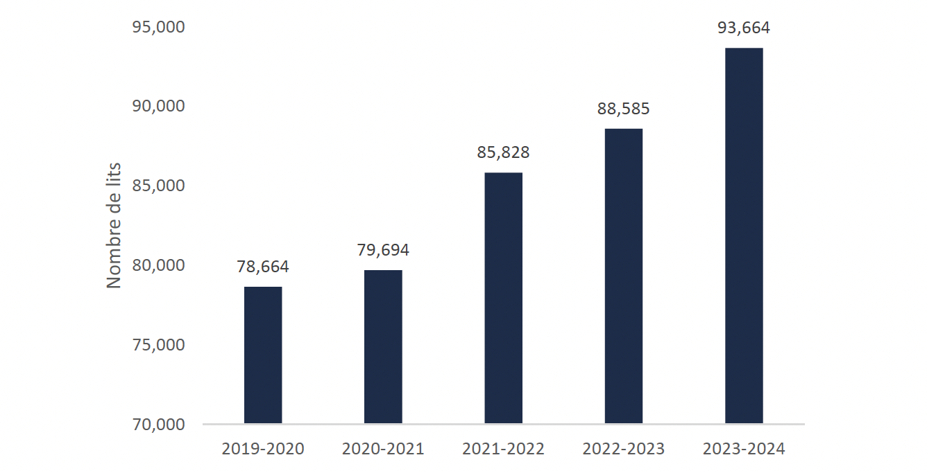 Nombre de lits (fin de l’exercice) | 78 664 | 78 664 | 79 694 | 85 828 | 88 585 | 93 664 | 3,6 % |
