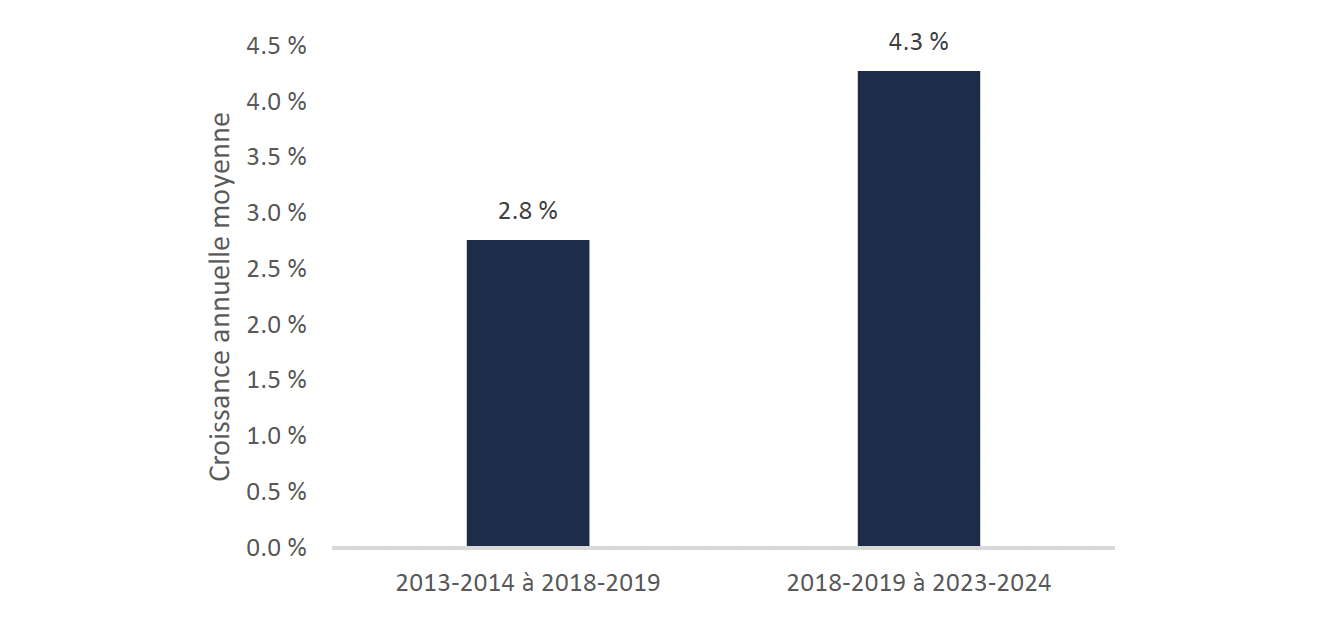 2018-2019 | 2019-2020 | 2020-2021 | 2021-2022 | 2022-2023 | 2023-2024 | Croissance annuelle moyenne |